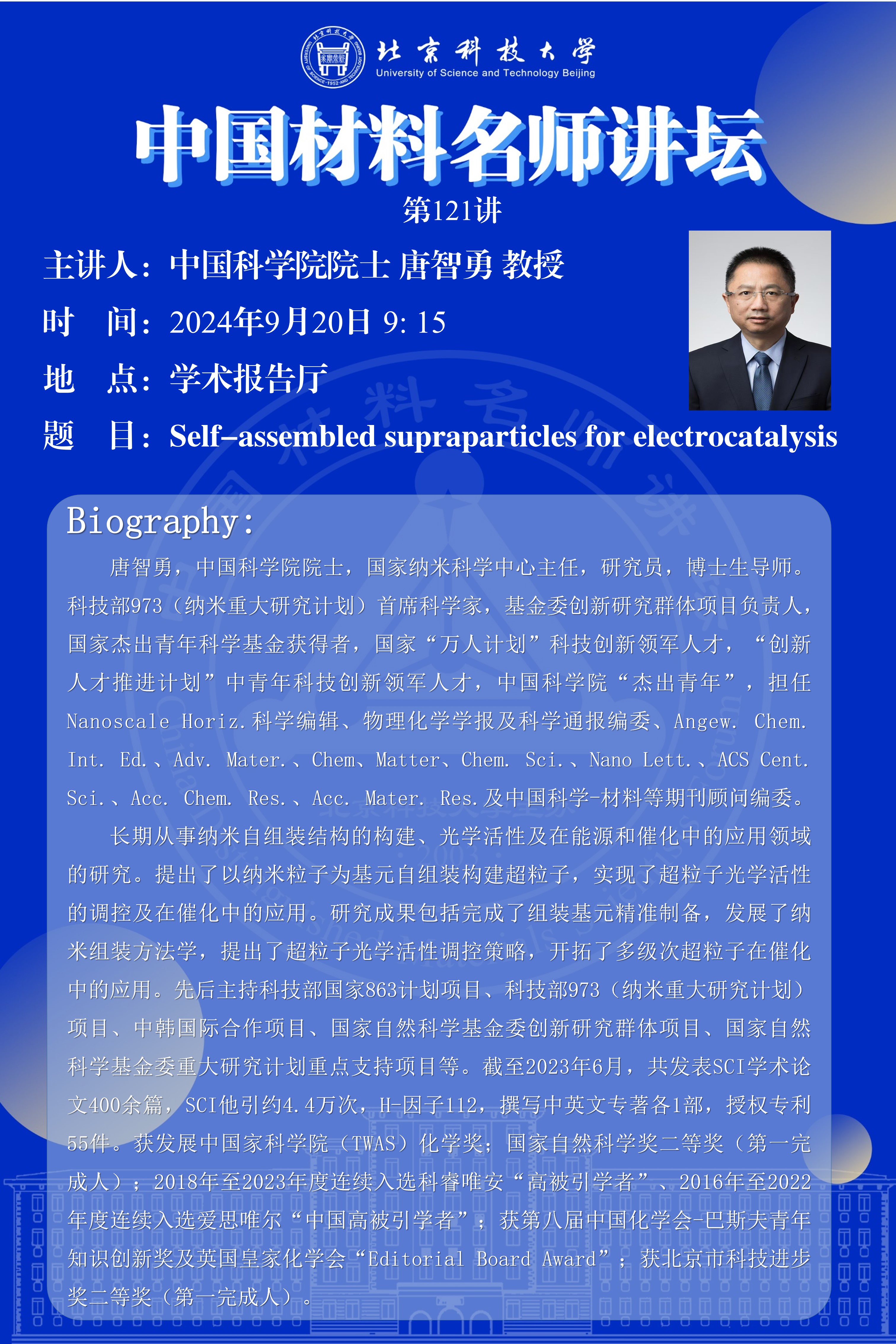 中国材料名师讲坛第121讲——唐智勇 院士